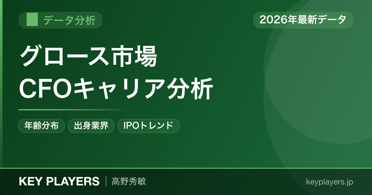 【2026年4月更新】 2022年4月の市場再編(マザーズ→グロース市場)を反映し、最新のCFOキャリアデータに更新しました。