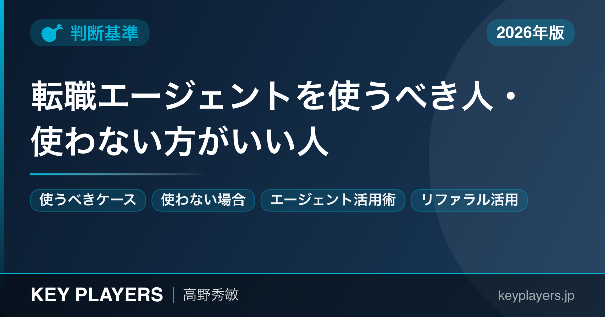 転職エージェントを使うことで理想の転職ができる人もいれば、エージェントを使わずに直接応募した方がうまくいく人もいます。特にベンチャー・スタートアップへの転職では、この判断が成否を左右することがあります。本記事では、25年以上のヘッドハンティング経験から見えた「エージェントを使うべき人・使わない方がいい人」の判断基準を正直にお伝えします。