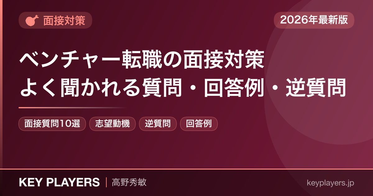 私はキープレイヤーズの代表として、年間数百人以上の転職者がベンチャー面接を突破するサポートをしてきました。面接通過率の差は、「準備の差」です。この記事では、ベンチャー転職面接の特徴・よく聞かれる質問・回答のコツ・逆質問まで徹底的に解説します。